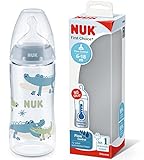 NUK First Choice+ Babyflasche | 6-18 Monate | Temperaturkontrolle | Fließkontrolle | Anti-Colic Belüftungssystem | 360 ml | BPA-frei | Silikonsauger | Krokodil (blau)